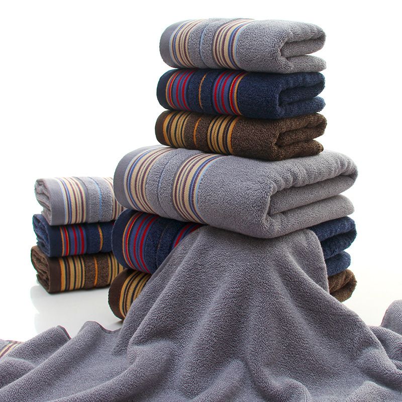 Grosshandel 3 Teilig Set Handtuch Set Dicker Streifenmuster Weiche 100 Baumwolle Badetuch Bad Super Saugfahigen Blau Grau Badetuch Gesicht