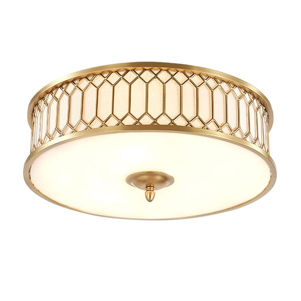 Grosshandel Europaische Kupfer Led Deckenleuchten Oberflache Montiert Lampen Schlafzimmer Wohnzimmer Amerikanischen Innenbeleuchtung Stoff Lampenschirm