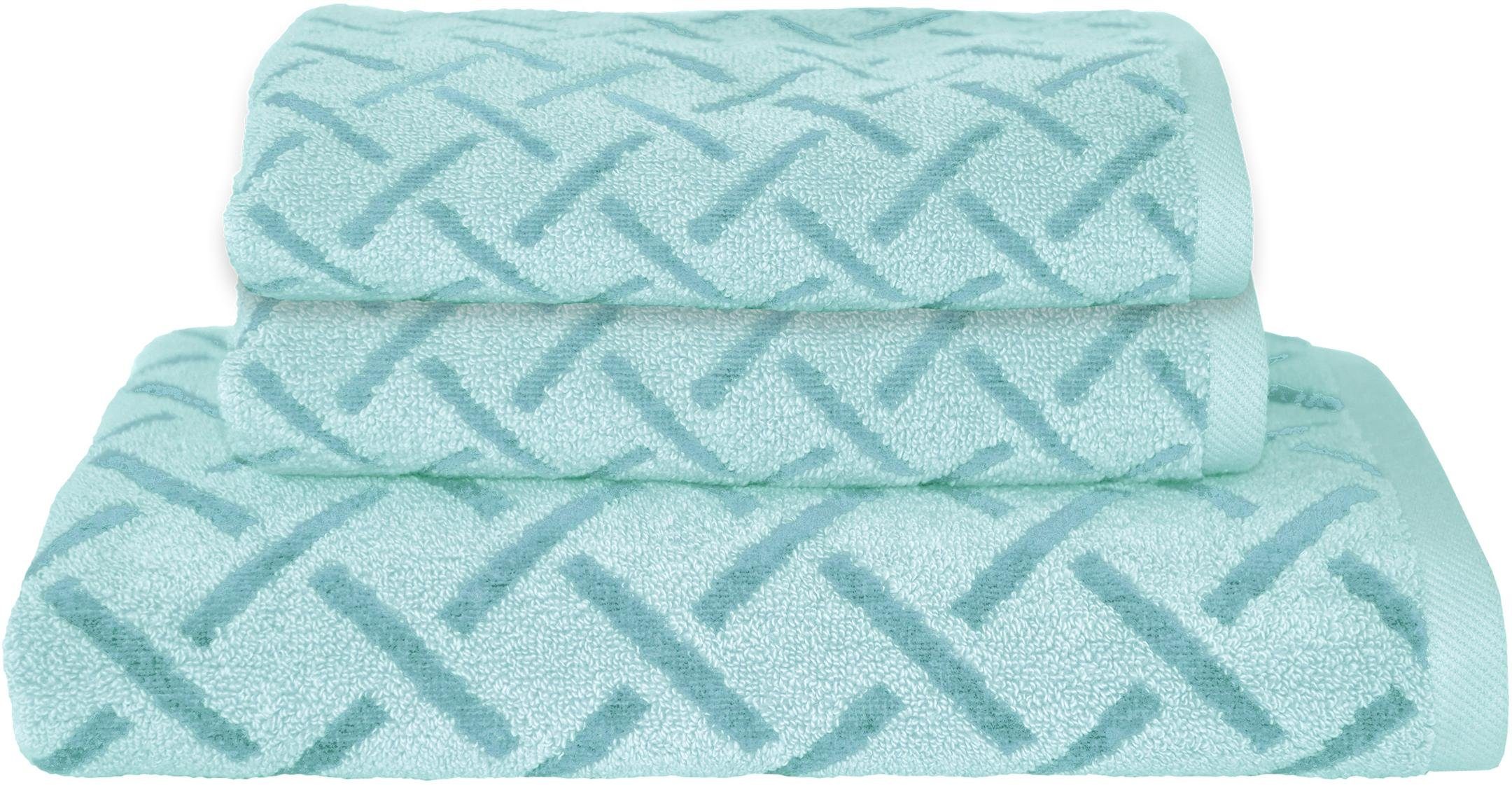 Handtuch Set Liv In Mint Weiss Mit Zickzack Muster 3 Tlg