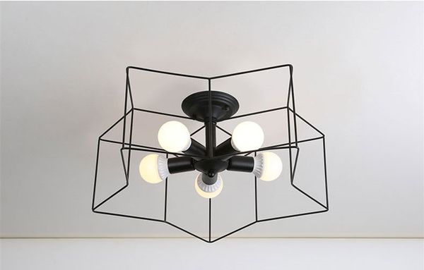 Grosshandel Nordic Einfachheit Eisen E27 Deckenleuchte Amerikanische Industrielle Kleines Schlafzimmer Wohnzimmer Restaurant Kreative Led Pentagram